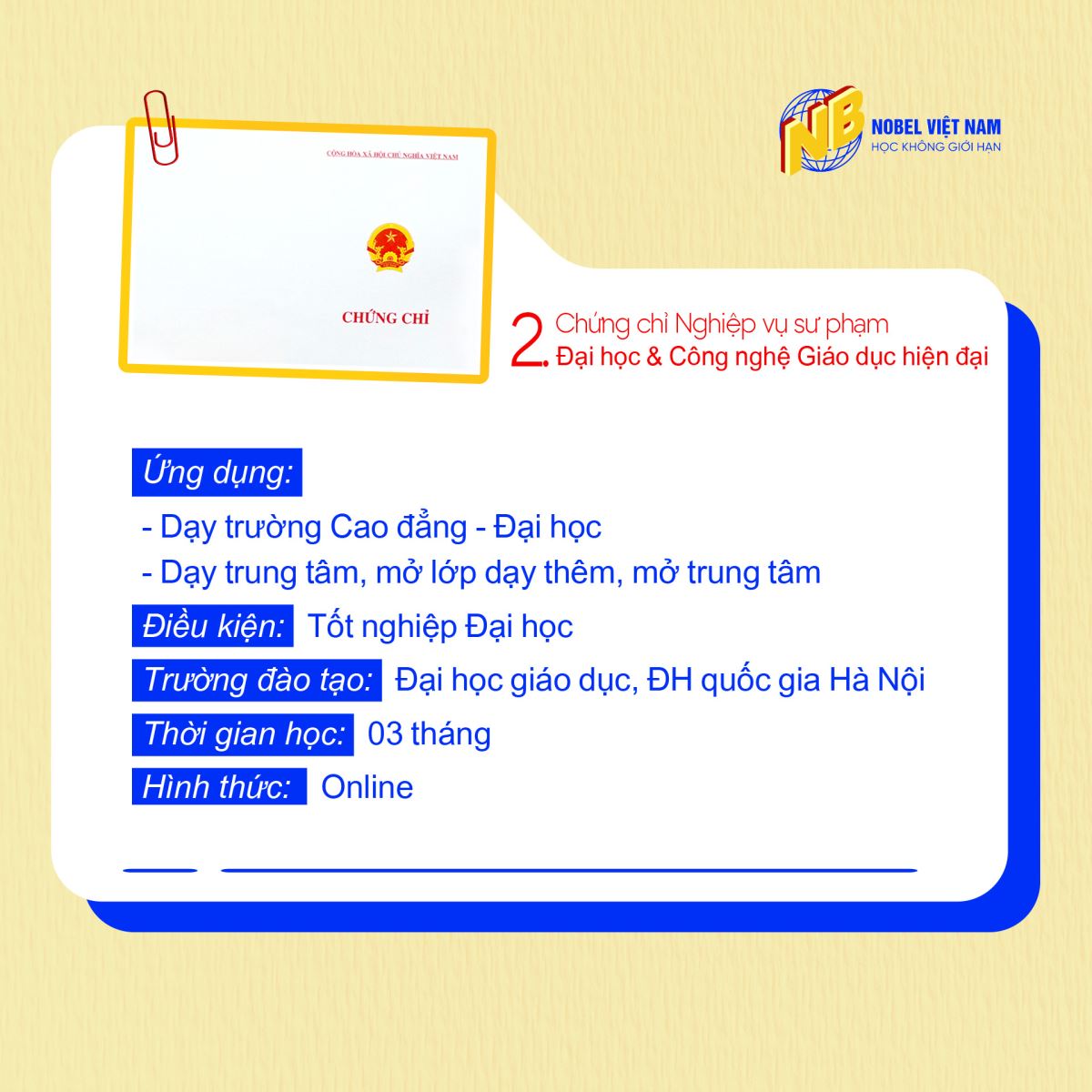 2. Chứng chỉ nghiệp vụ sư phạm Đại học và công nghệ giáo dục hiện đại