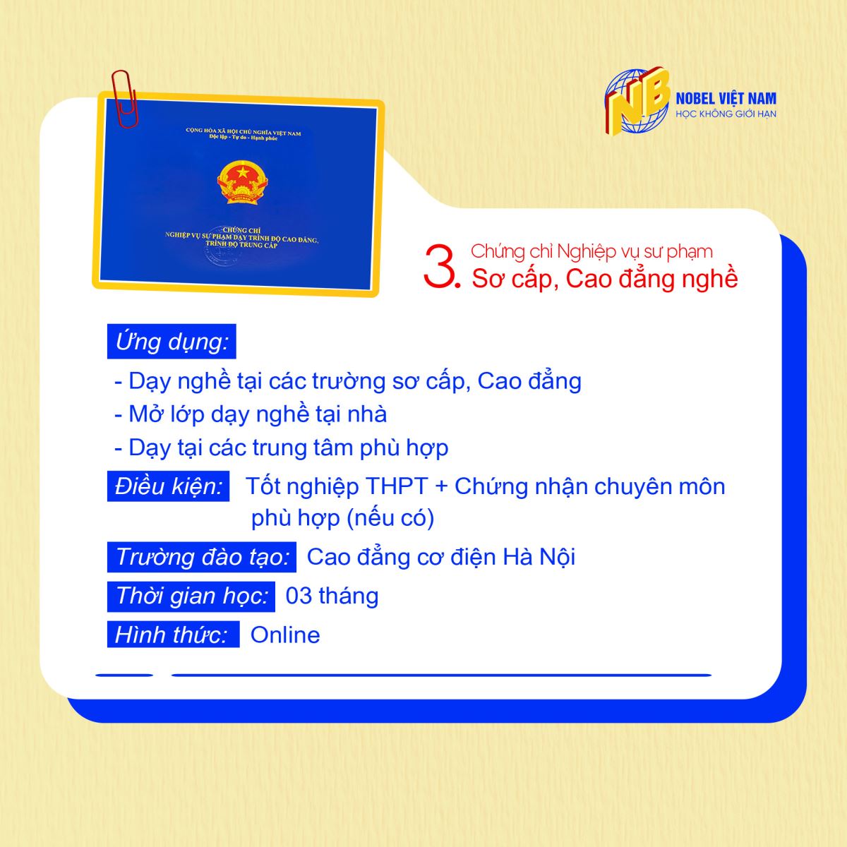 3. Chứng chỉ nghiệp vụ sư phạm Sơ cấp, Cao đẳng nghề